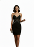 POPUP Robe de Soirée Courte en Tulle Transparent avec Décolleté et Bretelles Fines Idéale pour Evénements Festifs et Strass Brillant