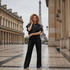 • Le Pantalon : Une coupe jambe large (wide leg) ultra-tendance qui élance la silhouette, avec une taille élastique confortable et des panneaux latéraux contrastés.