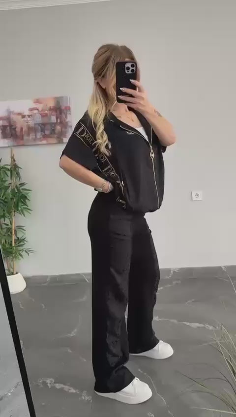 Adoptez l'élégance parisienne avec cet ensemble jogging de luxe, le parfait compromis entre le confort décontracté et le style haute couture. Que ce soit pour une sortie en ville ou un voyage stylé, cet ensemble deux pièces est une véritable déclaration de mode.
