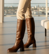 Ces bottes en similicuir lisse offrent un look élégant. Elles sont montées sur un talon épais de 7 cm environ, assurant confort et stabilité. Le choix entre noir ou marron permet une polyvalence dans votre garde-robe. Ce modèle intemporel ajoute une touche de raffinement à vos tenues, tout en restant moderne.
