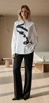 Cette chemise est conçue avec un motif sur l'avant, offrant un look unique et attrayant. Parfaite pour les femmes qui cherchent une pièce de vêtement à la fois confortable et stylée. Le format over size assure une silhouette et confortable.