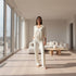 L'ensemble est discret et parfait pour une tenue décontractée. La veste est un peu courte, ajoutant une touche de style. Le pantalon coupe droite offre un confort optimal. Idéal pour les journées où vous recherchez confort et style.