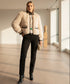 Cette veste en beige et camel est conçue pour vous offrir chaleur et confort. Elle présente un liseré décoratif sur le bas des manches et le long des boutonnieres. Parfaite pour les journées froides, elle combine style et fonctionnalité.